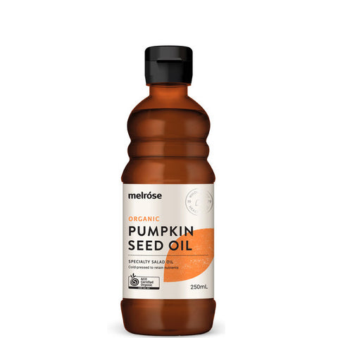 Melrose Organic Pumpkin Seed Oil has a low smoking point and is best used in salads and as a finishing oil.