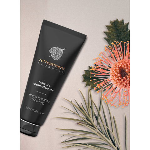 The Retreatment Botanics Radiance Cream Cleanser is a calming and nurturing facial cleanser. Designed to gently yet effectively remove excess oil, environmental pollution, makeup and impurities. It is ideal for normal to dry, dehydrated and mature complexions, and leaves skin feeling clarified, smooth and soft. A natural luxury, this cleanser is made with natural and organic ingredients, including active ingredients such as hydrating Aloe Vera Leaf Juice, antioxidant-rich Kakadu Plum Extract, rejuvenating Seabuckthorn Oil and moisturising Macadamia Nut and Coconut Oils.