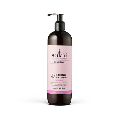 Delicate skin? No worries! Sukin's gentle Soothing Body Lotion enriched with Aloe Vera, Cucumber and Chamomile helps to calm and hydrate dry skin, leaving it looking rejuvenated and nourished.