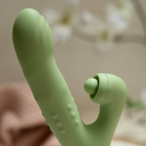 Try Senna, a unique rabbit vibrator with a pulsating nub, undulating beading, and a 'come-hither' finger movement for g-spot and clitoral stimulation.