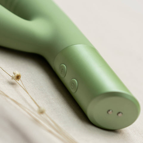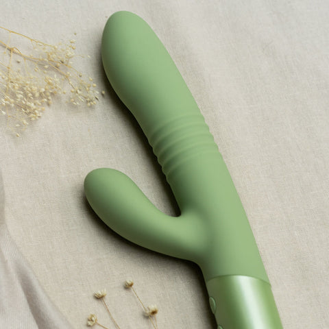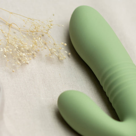 Yarrow is a mechanical thrusting dildo with a gentle, flexible clitoral vibe that adds to the symphony of pleasure.