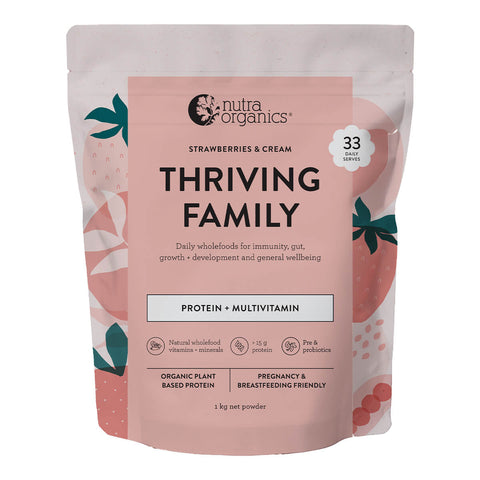 Thriving Family delivers a wholesome boost of protein, calcium, iron, selenium, vitamins C, D, E, folate and other B vitamins, all from organic wholefoods to support optimal health and wellbeing.