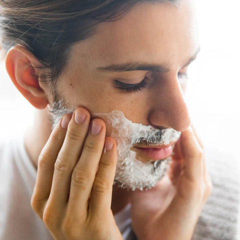 Massage a generous amount onto damp face and neck, then shave stubble and beard area. Remove with a warm, damp face cloth or rinse well with water.
