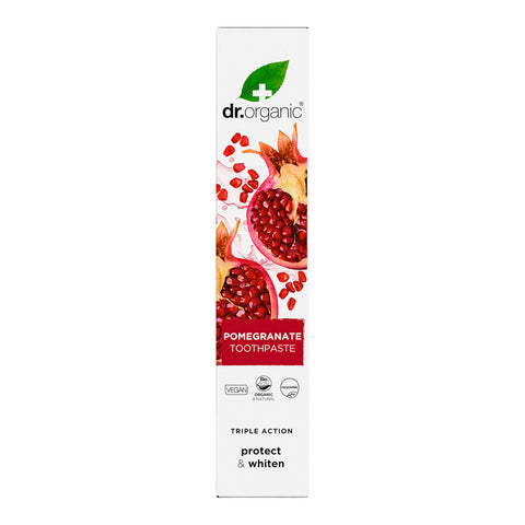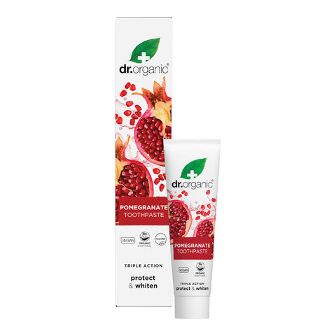 Dr. Organic Pomegranate Toothpaste is made with bioactive ingredients to help clean your teeth and gums. This naturally whitening toothpaste has a pleasant fruity and mint flavour. This toothpaste contains fluoride. Vegan and cruelty-free.