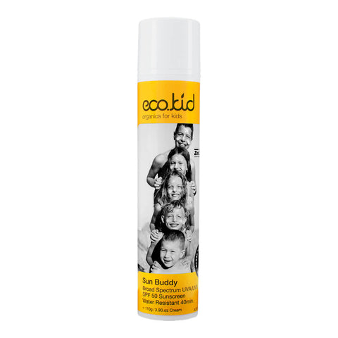 Eco.kid Sun Buddy SPF 50 Sunscreen is an ultra-gentle, fragrance-free, certified vegan and organic, 100% natural, food-grade, synthetic-free, and waterway-friendly sunscreen lotion.