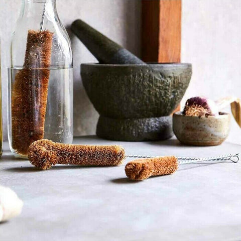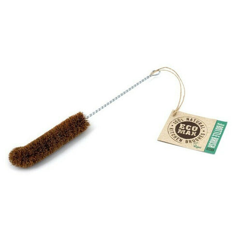 The Eco Max Bottle Brush in Large has a rust-proof, galvanised wire handle and bristles made with sustainable Coconut fibre from the mature husks of coconuts. Antibacterial and antifungal, it is ideal for cleaning longer and larger items such as vases, jars and bottles with a wide opening (greater than 5cm diameter). The brush is 37cm long and 5cm wide at the bend in the bristles. Can be rinsed clean and left to air dry or place in the top rack of the dishwasher.