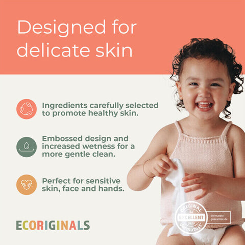Ecoriginals wipes are home compostable and biodegrade within 3 weeks, offering parents an environmentally considerate solution for hygiene and cleansing.