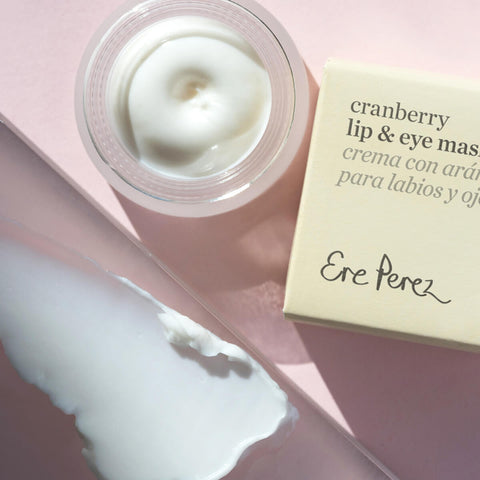 Regenerate delicate skin with this deeply moisturising Ere Perez Cranberry Lip & Eye Mask formula for eyes and lips. Featuring Shea butter, Cranberry fruit, Cucumber & lactic acid to promote regeneration of the delicate skin. The rich texture adds a protective layer that aids in managing the effects of environmental stressors on the skin.