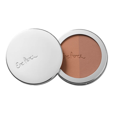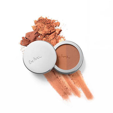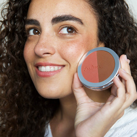 Sweep your blusher brush over the palette, getting an even amount of both colours for a natural glow. Shake off the excess powder and apply to the cheeks, eyelids, forehead, or anywhere you need an extra bit of bronze. Layer the colour until you are happy with the finish.