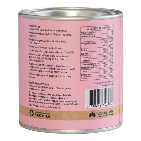 Eden Healthfoods Fem Balance helps balance female hormones, regain control, and alleviate mood swings, bloating, cramps, and sensitivity.