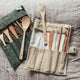 It includes a knife, fork, spoon, chopsticks, bamboo straw and cleaning brush. It comes in a handy Green + Kind roll-up pouch in a gorgeous olive-green colour with a press stud close. Packaged as is with a paper tag.
