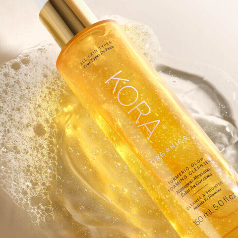 KORA Organics Turmeric Glow Foaming Cleanser is an invigorating, skin-friendly pH gel face wash that transforms into a foamy lather to gently yet thoroughly cleanse away dirt, oil, and impurities.