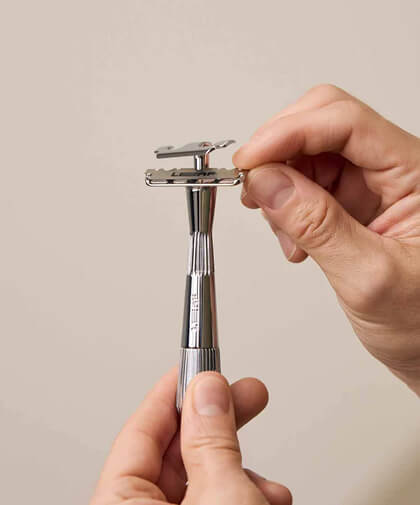 To load or remove blades from The Twig, unscrew the handle to open the razor head. Then, carefully add or remove your blade.