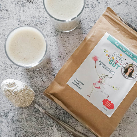 Supercharged Food Love Your Gut Powder is a diatomaceous earth powder that gently cleanses your gut of accumulated wasteโ€”between 500g to 3 kilos of undiscarded waste can build up in your digestive system.