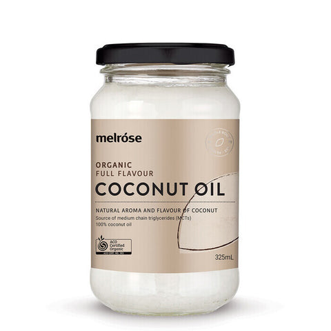 Melrose Organic Full Flavour Coconut Oil is available in two sizes: 380ml and 1 Litre.
