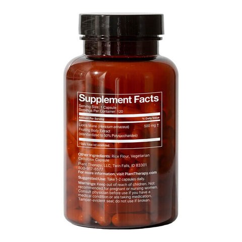 Lion's Mane Fruiting Body Extract with Rice Flour in a Vegetarian Cellulose Capsule.
