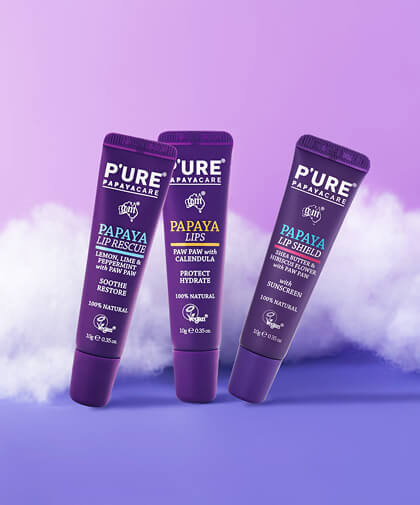 P'URE Papayacare range is 100% Natural ACO COSMOS certified & 100% Vegan registered.