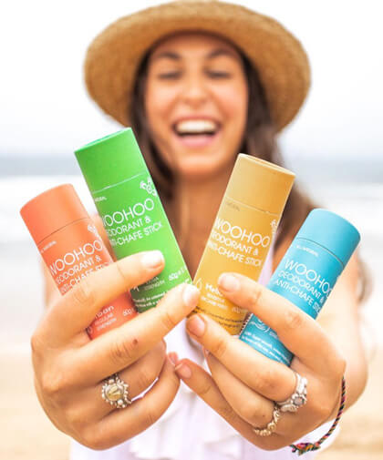 Woohoo's range of natural deodorants work to absorb moisture and neutralise odour-causing bacteria to keep you smelling and feeling fresh.