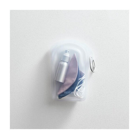 The Stasher Go Bag in Clear is made for every adventure, big or small! This eco-friendly alternative to plastic zip-lock bags comes with a recycled aluminium carabiner so you can clip your Stasher to your bag. Go Bag keeps your essentials protected and easily accessible with the leak-free patented Pinch-Loc® seal. Use it for anything you can think of! Perfectly sized for a mobile phone, hand sanitiser, sunglasses, trail mix, stationery and so much more!