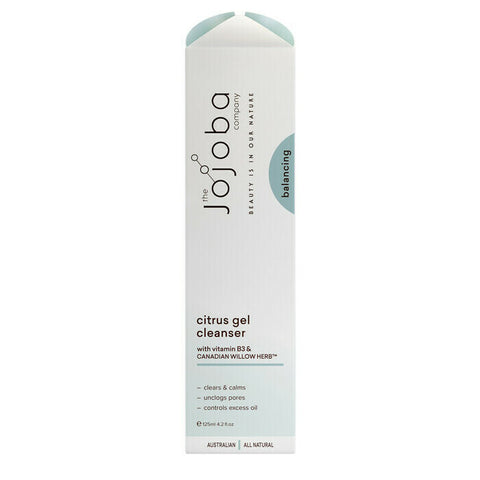 The Jojoba Company Citrus Gel Cleanser with Vitamin B3 & Canadian Willow Herb™ is a non-drying, gel cleanser specially designed to soothe and balance oily, combination and problem skin. Rich in Jojoba Seed Oil, Mountain Pepper Berry Extract and Chamomile Extract, and with antibacterial properties, this gentle cleanser is formulated to decongest pores, clear and calm the skin, and control the production of excess oil to leave skin feeling fresh and soft.