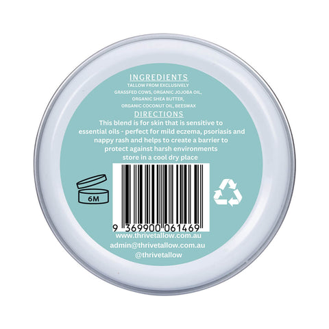 A gentle, unscented tallow-based moisturiser specially formulated for those with sensitive skin or a preference for no fragrance. This pure, nourishing moisturiser is rich in vitamins A, D, E, and K, delivering deep hydration without irritating delicate skin.