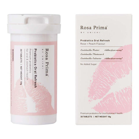 Bulking Agent (Sorbitol), Acidity Regulator (Citric Acid), Alkali (Sodium Bicarbonate), Anticaking Agent (Fatty Acid Salts of Magnesium), Flavours (Rose Flavour, Peach Flavour), Sweeteners (Sucralose, Steviol Glycosides), Colour (Allura Red AC), Lactobacillus Reuteri, Lactobacillus Plantarum, Lactobacillus Salivarius