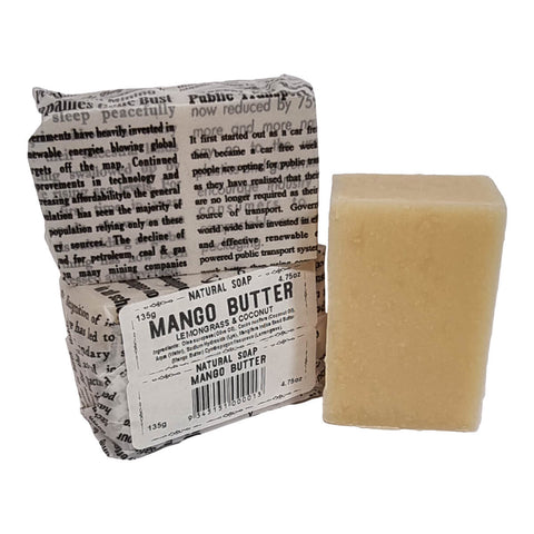 Cocos Nucifera (Coconut Oil), Olea Europaea (Olive Oil), Aqua (Water), Sodium Hydroxide (Lye), Mangifera Indica Seed Butter (Mango Butter), Cymbopogon Flexuosus (Lemongrass).