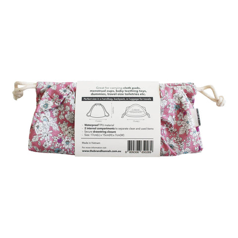 Perfect for placing in your handbag, backpack, or luggage while travelling. It features two compartments to separate clean and used pads, a waterproof lining on the inside, and a secure drawstring closure with less plastic.