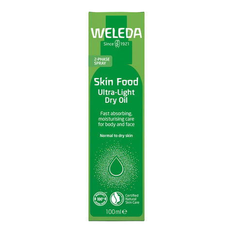 Weleda Skin Food Ultra-Light Dry Oil provides quickly absorbed, intensive moisturising care, for an instant glow and beautifully soft skin.