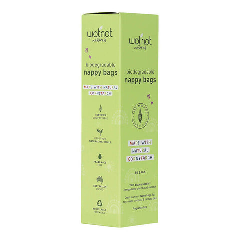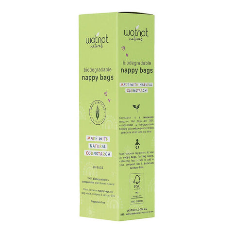 They're also 100% compostable, unperfumed and based on natural GM-free cornstarch. Like all WOTNOT products, these nappy bags are free from sulphates, petrochemicals, parabens, artificial preservatives and fragrances.